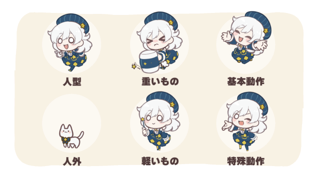 Spineではスチル・ミニキャラ・カードイラスト風など多様な作品が制作可能です。
